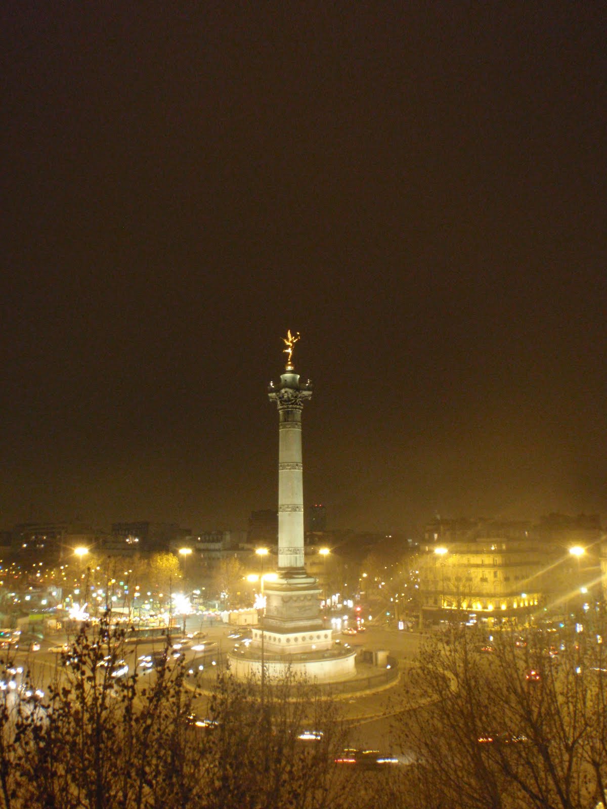 Well, Happy New Year to you all from Paris. We arrived here on December 30, after a long journey we would rather forget, which involved missing our connecting flight and pretty much no sleep! But anyway, once settled in our apartment we soon forgot our troubles and began enjoying Paris. The top 2 photos are taken from the little balcony of our apartment, which is situated right on Place de la Bastille. It is very cosy (i.e., tiny) but in a great position and, as you can see, the view is amazing. In the second photo you can see, on the right, part of the Eiffel Tower (the top is covered in cloud) which shimmered in lights every ten minutes on New Years Eve.